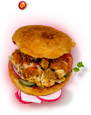 A hearty blend of marinated paneer, diced potatoes, and chickpeas tucked into a toasted bao bun.